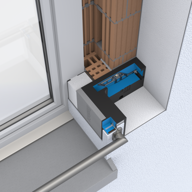 Die Tragwinkel TRA-WIK-ALU-RF / -RL ermöglichen die wärmebrückenfreie Montage von Anbauteilen im Eck- und Fensterbereich von Wärmedämmverbundsystemen, hinterlüfteten Fassaden und Innendämmsystemen.